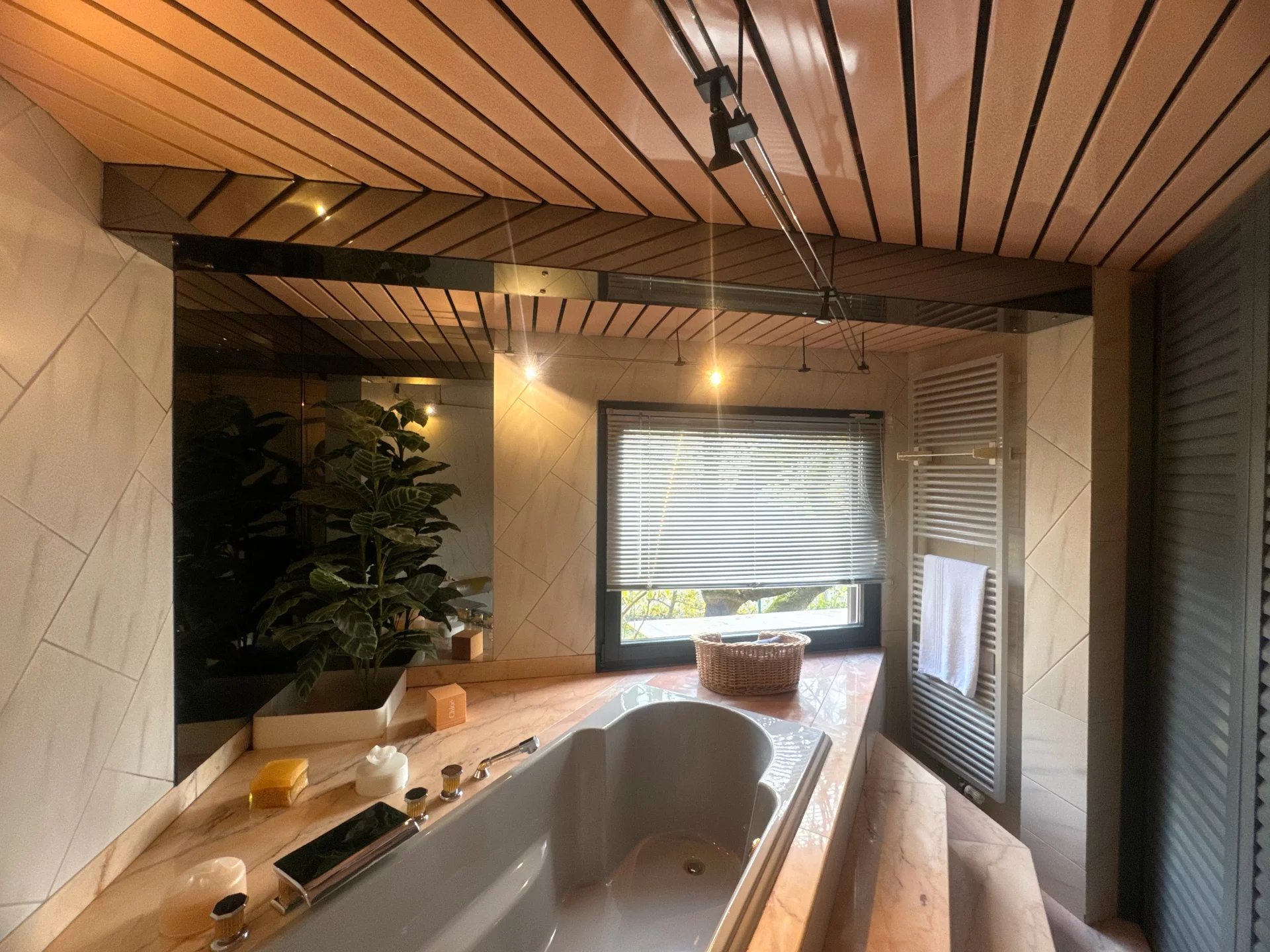 Cette maison offre une intimité incomparable avec une vue dégagée, à l’abri de toute nuisance. Depuis le salon, une porte vitrée offre un accès privilégié au jardin. À l’extérieur, plusieurs balcons ainsi qu’un jardin entourant la maison permettent de profiter pleinement des espaces extérieurs dans une sérénité rare.