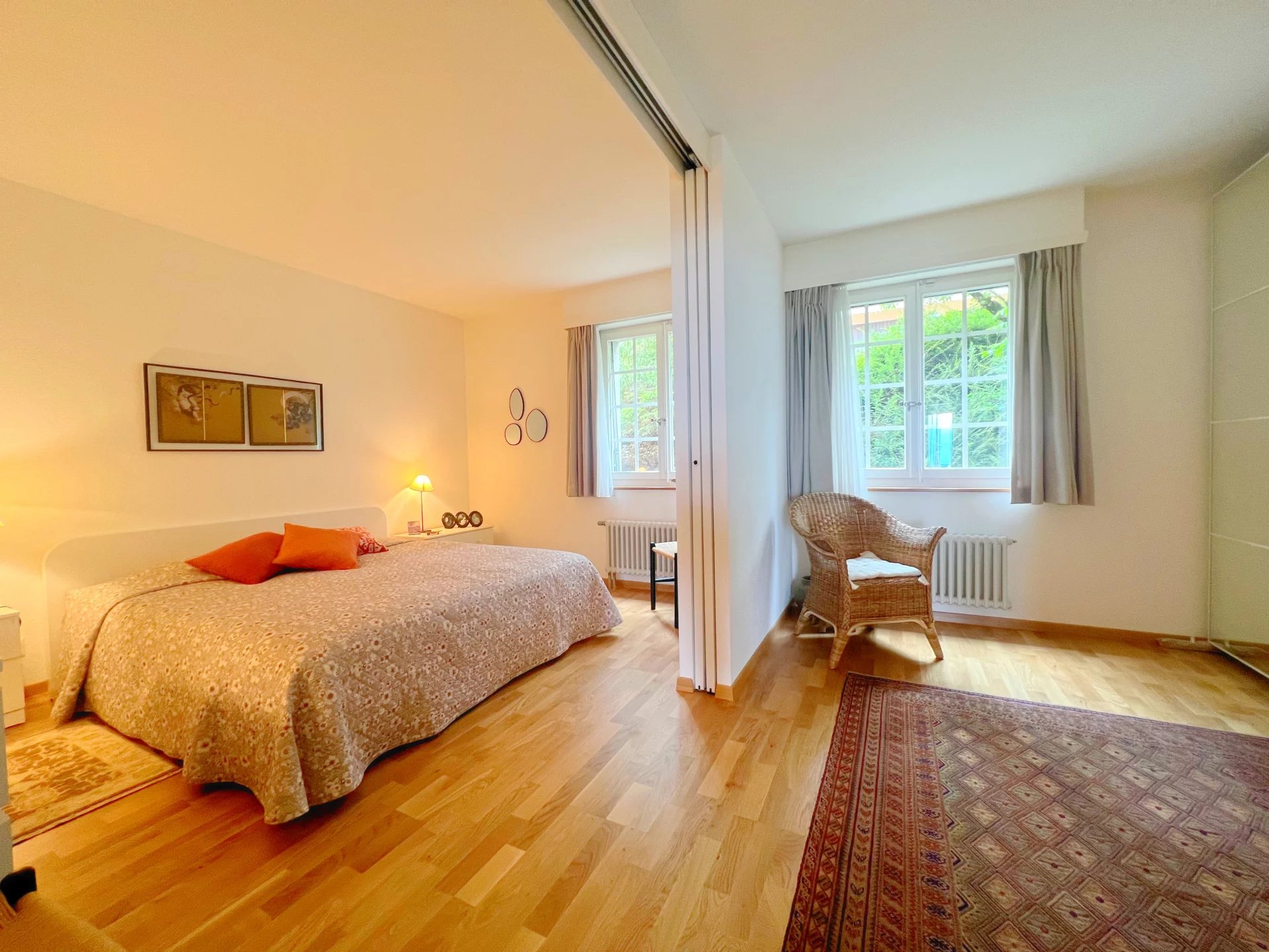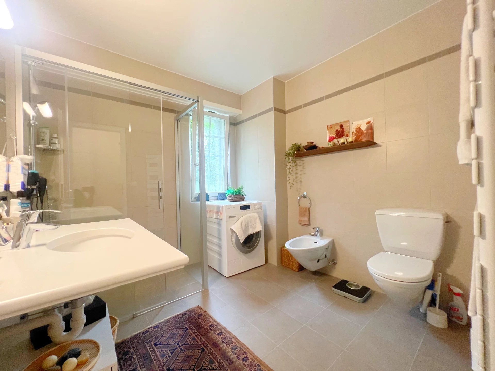 Pour compléter ce cadre idyllique, l'appartement dispose de deux caves spacieuses, d'une cave à vin, d'un garage box sécurisé, ainsi que d'une place de parking extérieure. Ce bien rare est une véritable invitation à la sérénité et au confort.