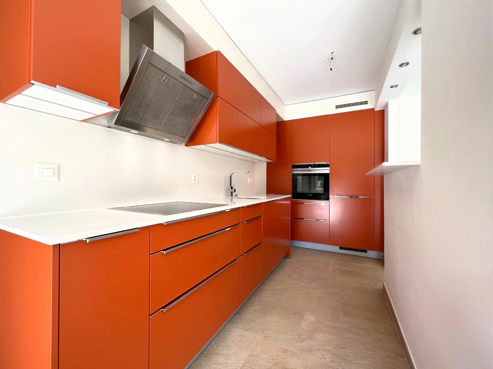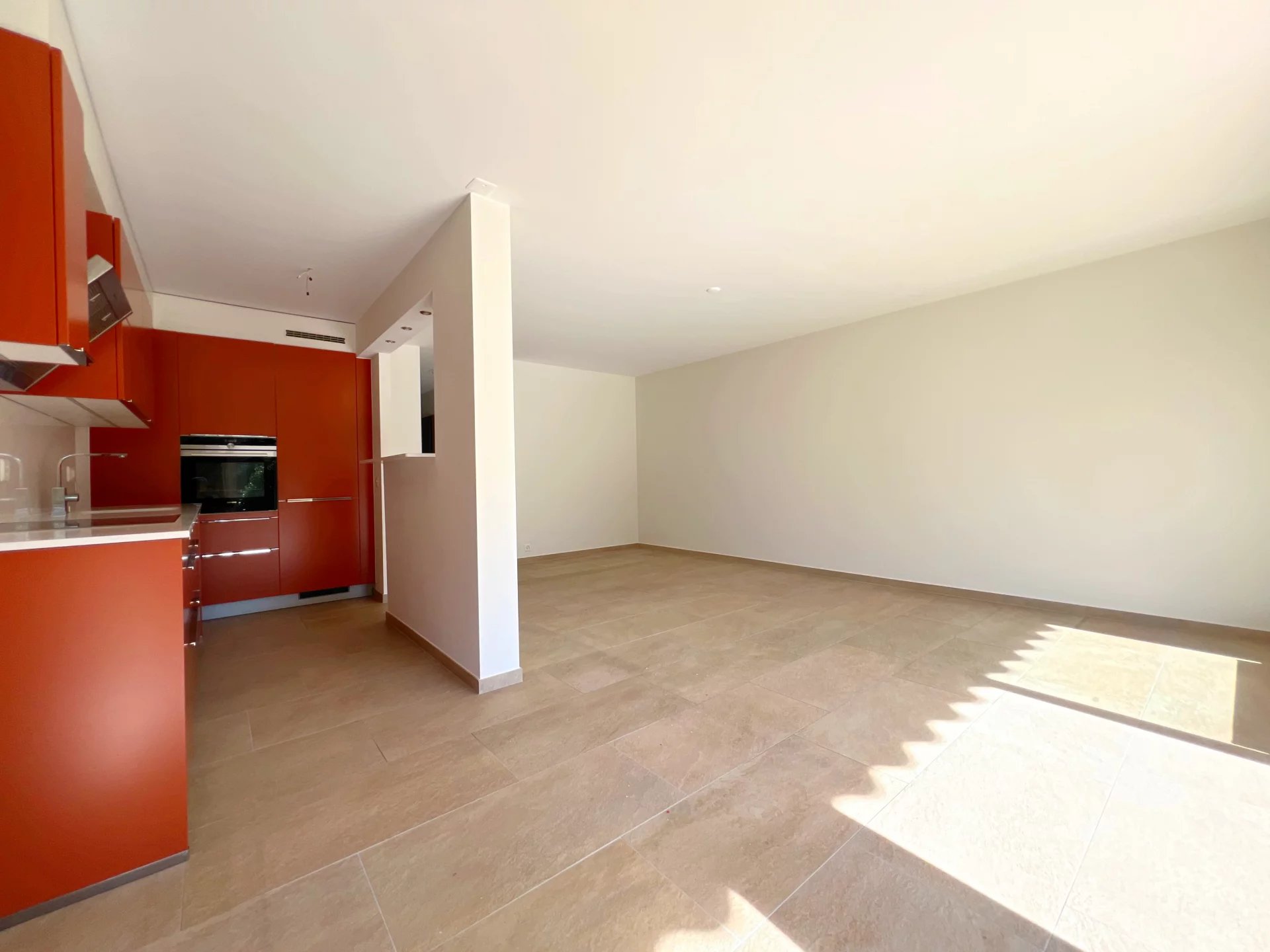 L'espace de vie principal se caractérise par un grand séjour lumineux, baigné de lumière naturelle, disposant d'une cuisine moderne et élégante. La cuisine est équipée avec des appareils haut de gamme, parfaitement conçus pour les amateurs de cuisine.