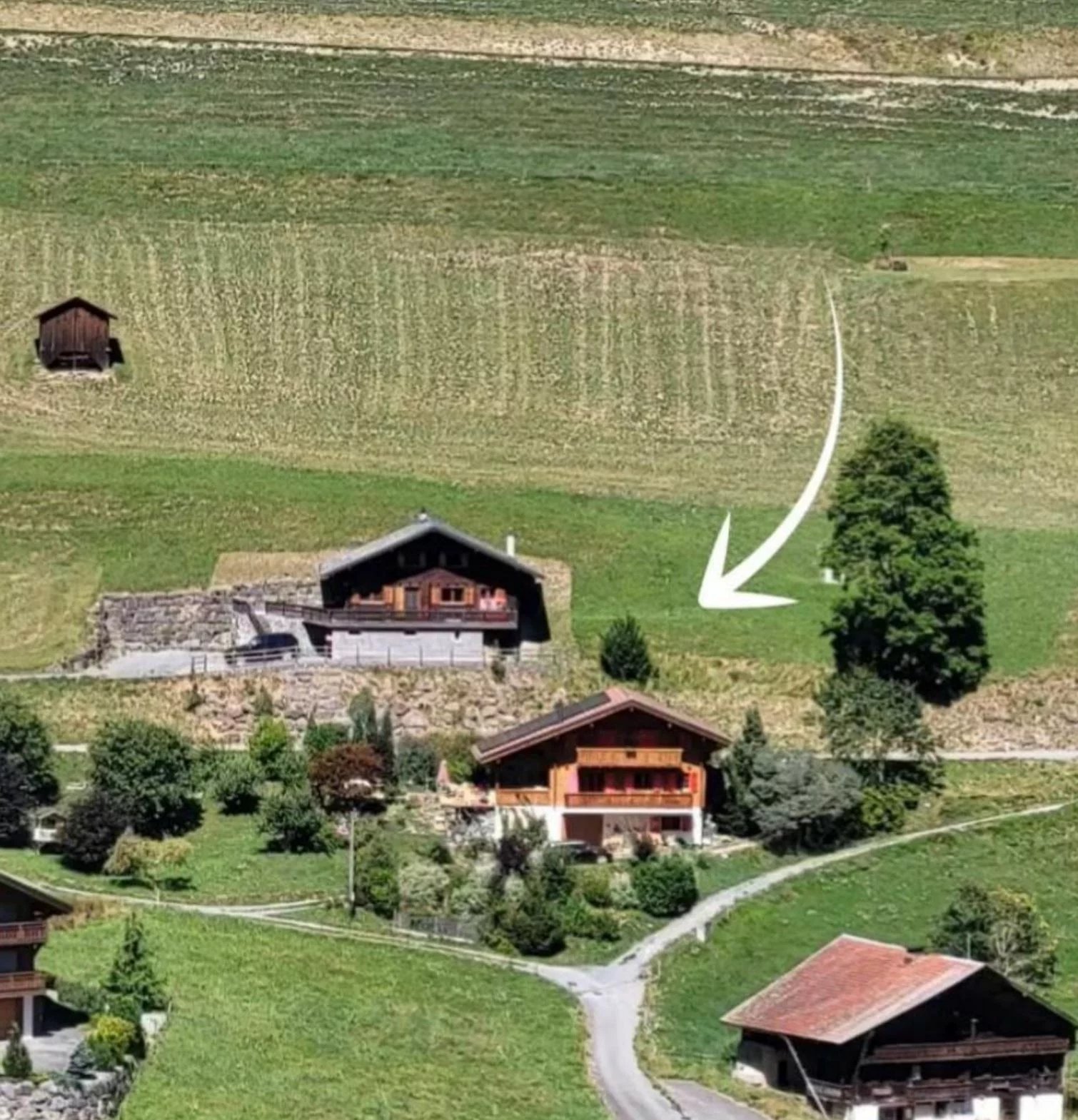 Sur cette parcelle le chalet existant (Voir photos et plans) ainsi que le futur chalet individuel ( flèche blanche) seront soumis au régime de la PPE (déjà constituée)